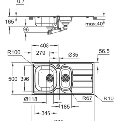 Grohe K200 1.5 Bowl Stainless Steel Sink 965 X 500mm
