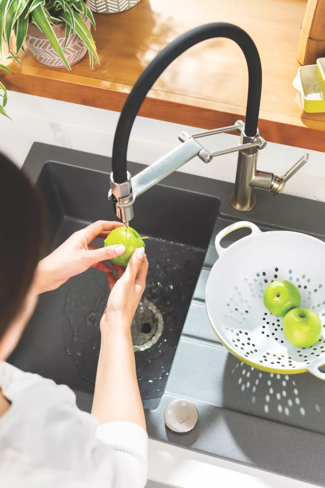 Converts any tap, new or existing, to deliver crystal clear, filtered water. Improves taste and odour and reduces hard water. Requires a 35mm tap hole.