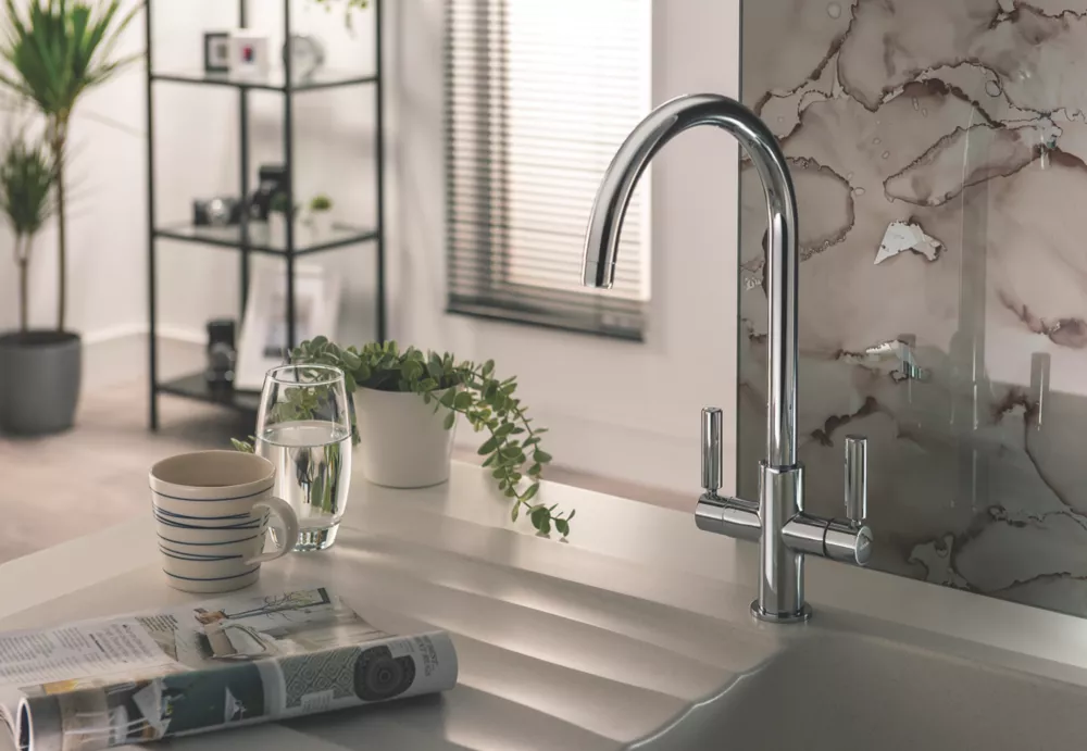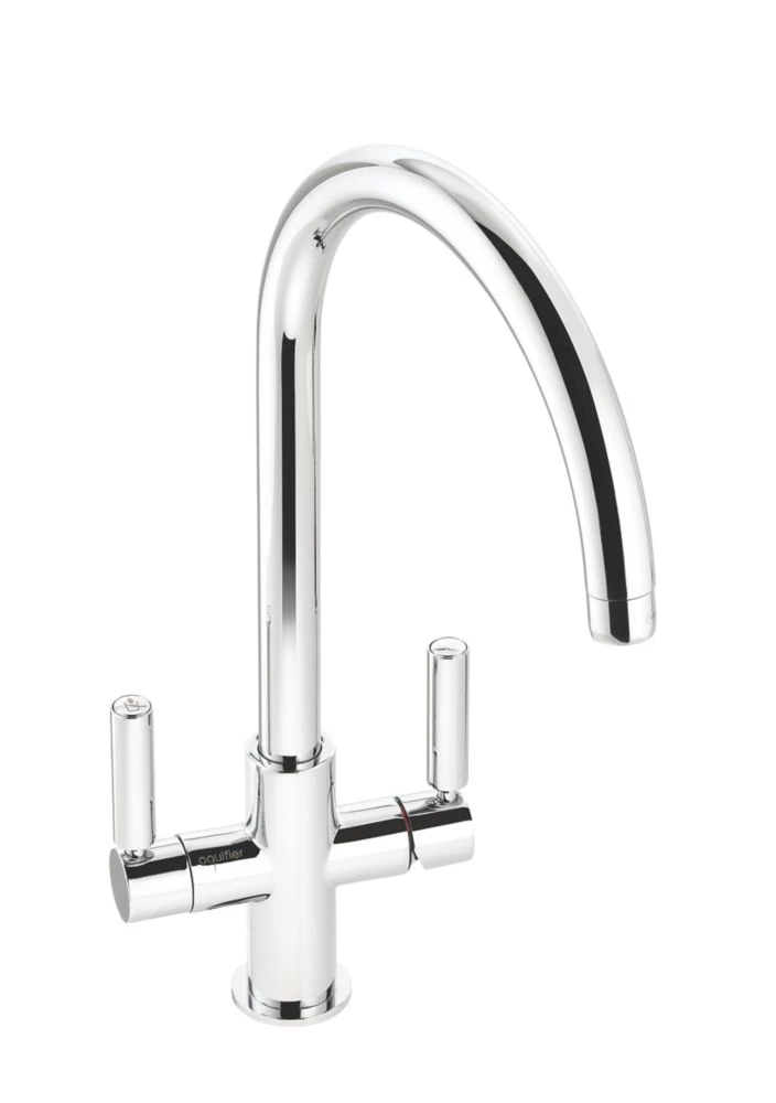 Monobloc tap with the addition of filtered cold water as well as normal hot and cold functions.