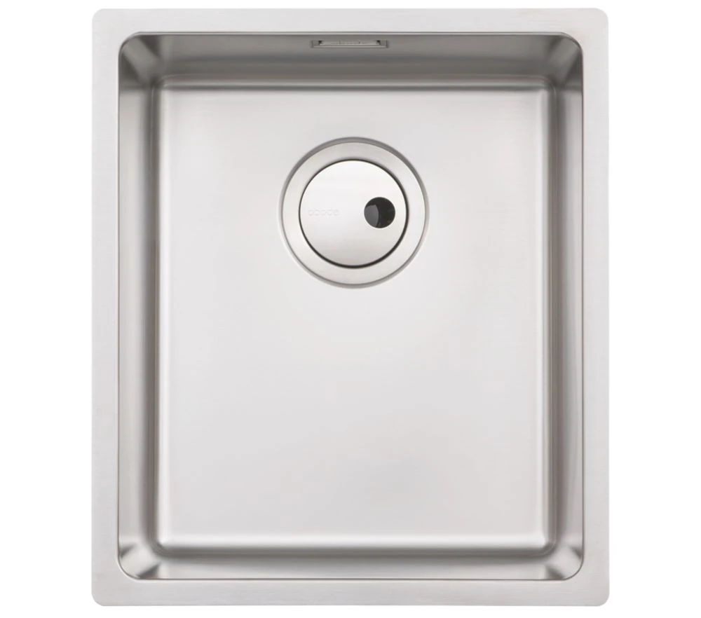 Sleek and modern, easy-clean single bowl sink with close-to-square corners. Offers option of undermounted or low profile inset installation. Features flush plate overflow and practical Orbit waste.