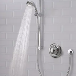 Mixer shower that uses water from both hot and cold water systems to create the perfect shower temperature. To increase performance you can add a pump: if you have a gravity-fed system. Maintains constant water temperature. Limescale-resistant. Pre-set maximium temperature.