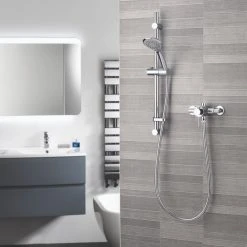 Concentric valve for accurately controlled high performance showering. Concealed and exposed option for ease and flexibility. With brass body and metal handles. 3-mode 110mm handset for variable spray patterns. Supplied with 1.5m metal hose.