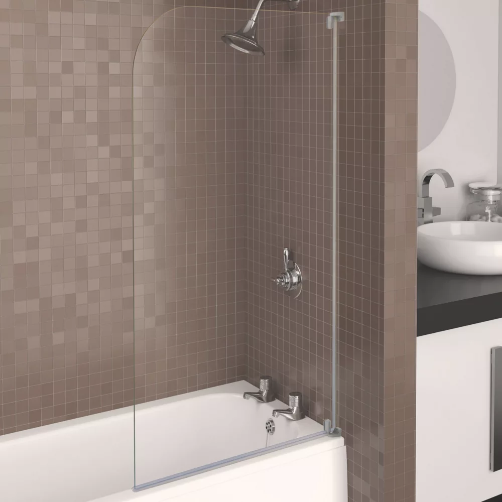 Half-framed radius design. Features clear, anticalc-protected, toughened safety glass. Ideal for protecting bathrooms from splashes and water damage.
