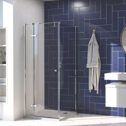 Simple 4-fold concertina design suitable for both modern and traditional bathrooms. Features clear, anticalc-protected, toughened safety glass. Ideal for protecting bathrooms from splashes and water damage. Offers easy fit with 3 screw-in assembly points. Can easily be folded away when not in use. Left or right-handed.