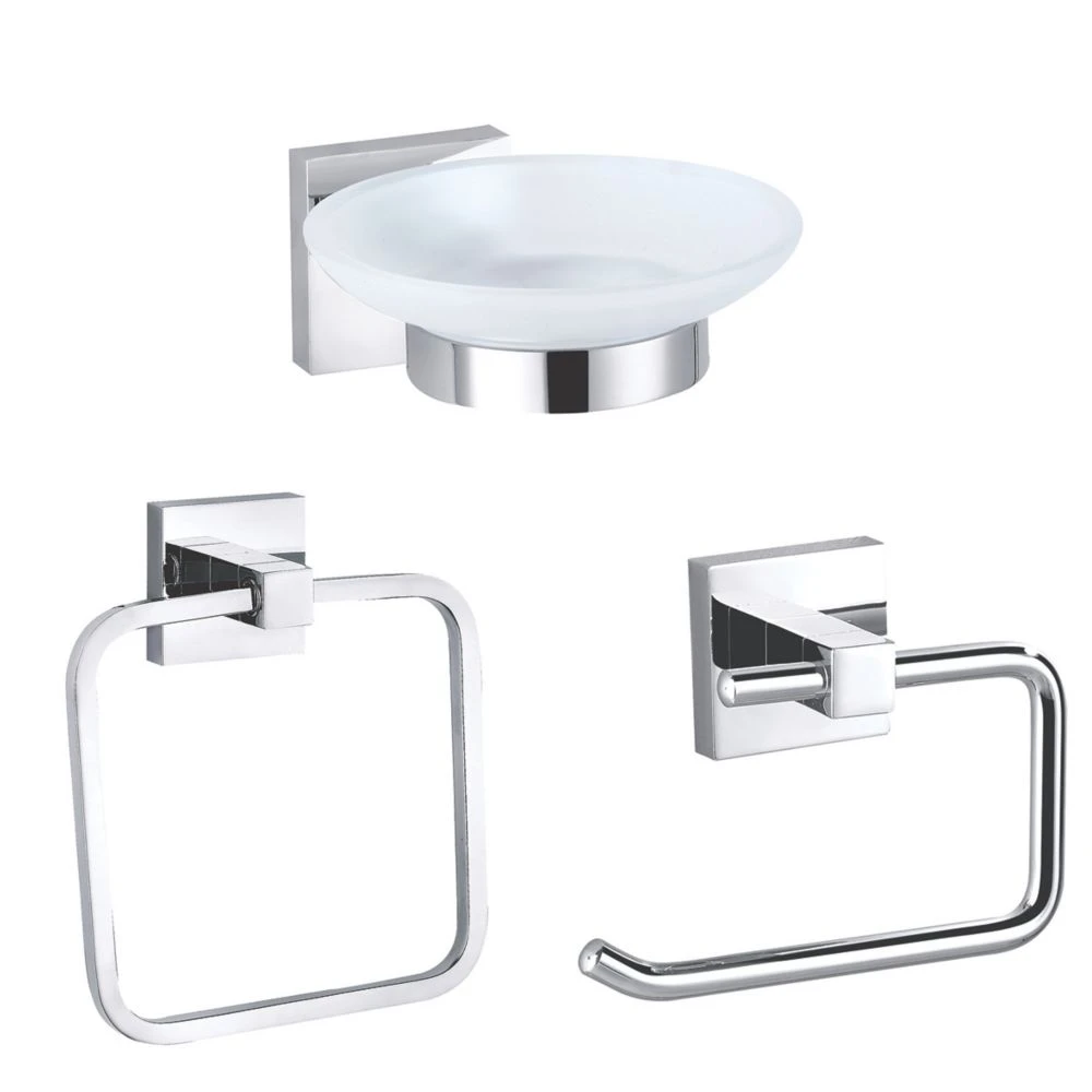 High quality, long-lasting 3 piece set. Chrome-plated brass construction. Supplied with fixing kit.