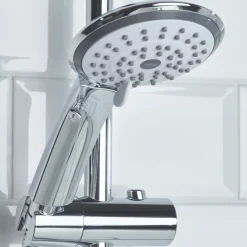 Sleek and contemporary design with thermostatic technology. Simple solution for installing, maintaining and replacing bar showers, using built in front-of-wall isolation valves. Thermostatic cartridge with 38°C pre-set temperature stop (can be overridden to a maximum of 46°C). Flow control handle, with Eco Button, to save water. Supplied with wall mount fixing kit.