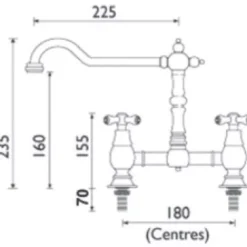 Bristan colonial bridge sink mixer kitchen tap. Chrome-plated brass.