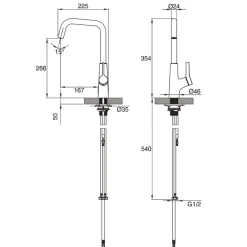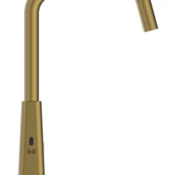 Stylish design with asymmetric body, part curved, part flat with motion sensor located on left face. Water can be controlled via both the sensor and manually, but the handle must be opened to operate the sensor control, allowing user to select temperature and flow rate.
