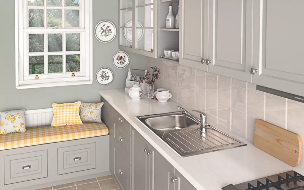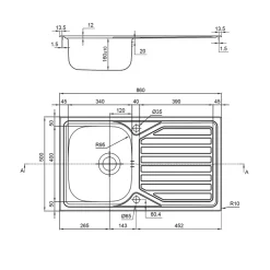 Contemporary style sink. Manufactured from 0.6mm gauge stainless steel and can be fitted as left or right hand drainers. Main bowl width is 340mm.