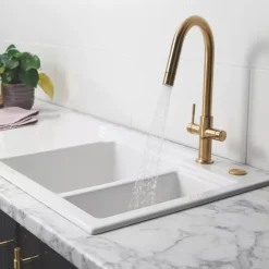 Slimline, urban design with minimalist high-set knurled controls. Twist and spray aerator provides non-splash, aerated water flow or needle-jet spray, ideal for jobs such as rinsing plates, changed with a simple twist of the flange.