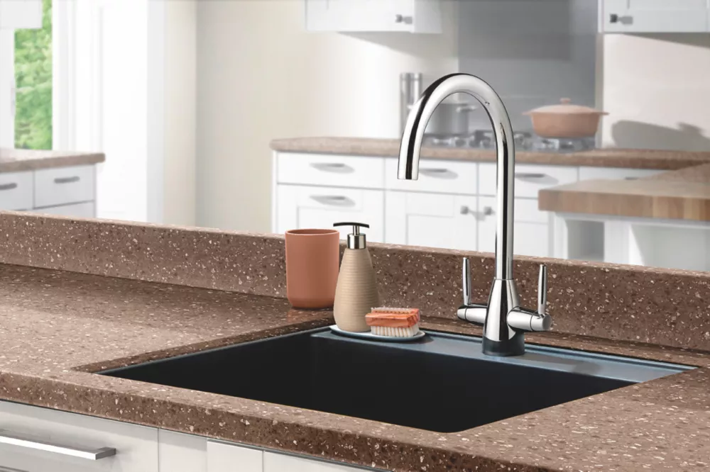 Features tapering base and simple, ergonomic controls. Twist and spray aerator provides non-splash, aerated water flow or needle-jet spray, ideal for jobs such as rinsing plates, changed with a simple twist of the flange.