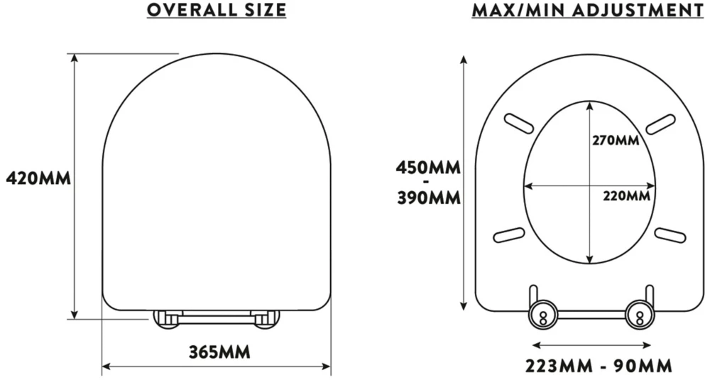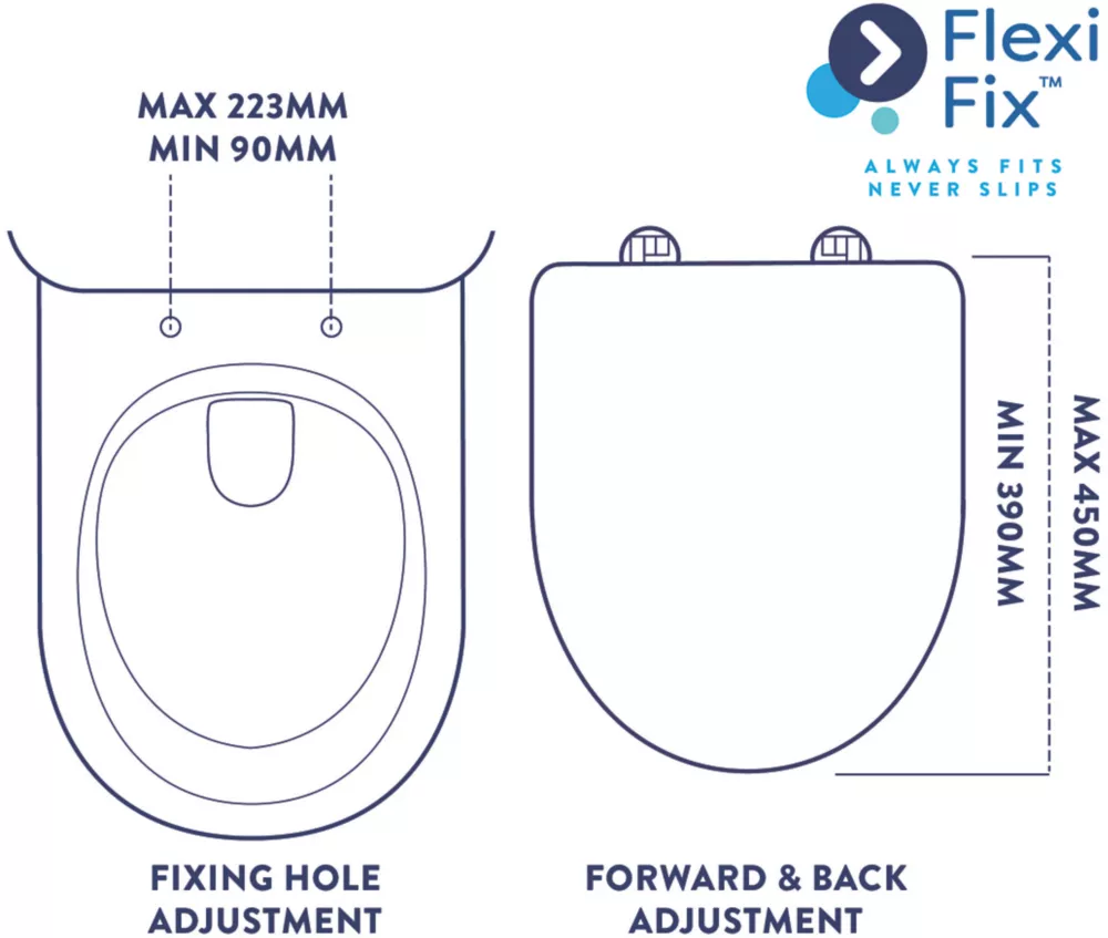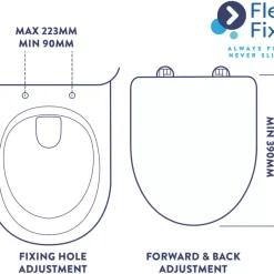 Grip pad technology and Flexi-Fix hinges provide maximum adjustability and secure no slip fitting. Made from thermoset plastic in a D-shaped design. Includes fixings for top and bottom fix pans. Quick-release, soft-close.