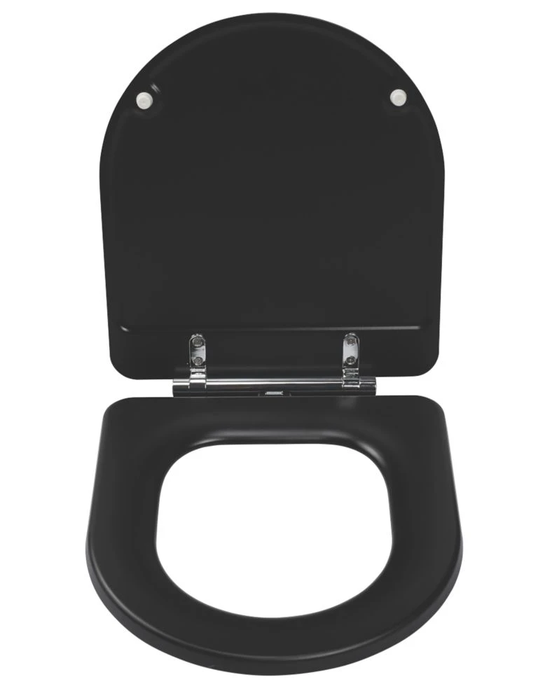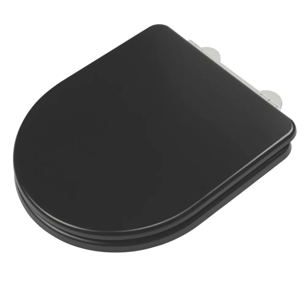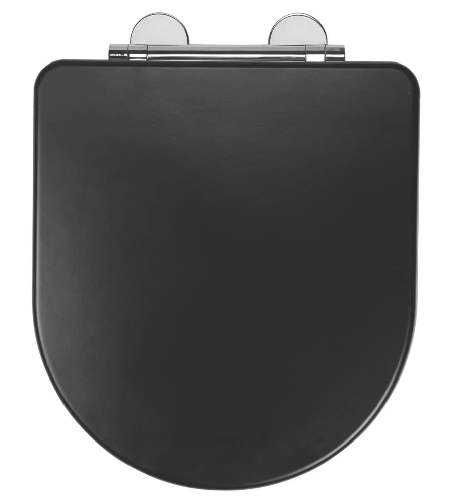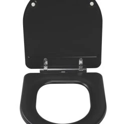 Flexi-Fix toilet seat with high strength, adjustable hinges for a non-slip fitting. Made from long-lasting moulded wood in a D-shaped design. Easy installation. Simply remove the protective film, position the self-adhesive hinges and tighten into place. Polished hinge covers clip into place for a stylish finish. An anti-bacterial treatment makes it easy to clean. Quick-release, soft-close. Compatible with any standard UK toilet pan.