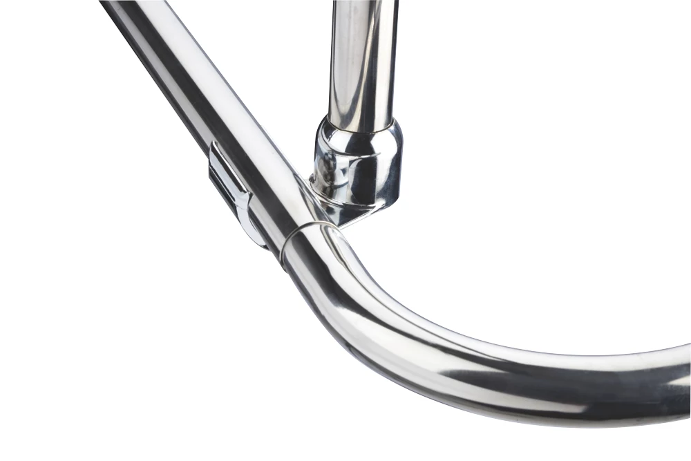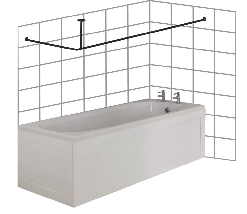 Modern design. Chrome-plated stainless steel rod and ceiling support with chrome-plated zinc wall brackets.