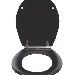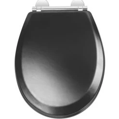 Flexi-Fix toilet seat with high strength, adjustable hinges for a non-slip fitting. Made from long-lasting moulded wood. Easy installation. Simply remove the protective film, position the self-adhesive hinges and tighten into place. Polished hinge covers clip into place for a stylish finish. An anti-bacterial treatment makes it easy to clean. Quick-release, soft-close. Compatible with any standard UK toilet pan.