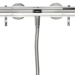 Assistive showering set with thermostatic mixer. Twin-stop safety device, comfort at 38°C with maximum hot temperature of 46°C. Safecool technology, cold water insulates the mixer body making it safe to touch. 4-function handset with rub-clean nozzles and optional eco feature. Integrated Grab ‘n’ Grip riser rail to stop wet hands from slipping. 2m Hose with 11mm bore allows showering whilst in a seated position. Suitable for users up to 100kg (tested to 150kg).