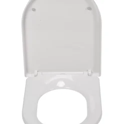 Stick ‘n’Lock toilet seat with high strength, adjustable hinges for a non-slip fitting. Made from durable polypropylene. Easy installation. Simply remove the protective film, position the self-adhesive hinges and tighten into place. Polished hinge covers clip into place for a stylish finish. An anti-bacterial treatment makes it easy to clean. Quick-release, soft-close. Compatible with any standard UK toilet pan.