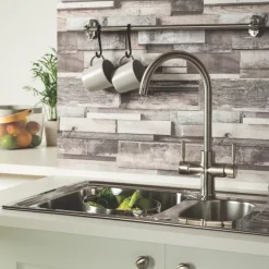 3-in-1 tap delivering steaming hot water up to 98°C. Also provides standard hot and cold water from a mixer.