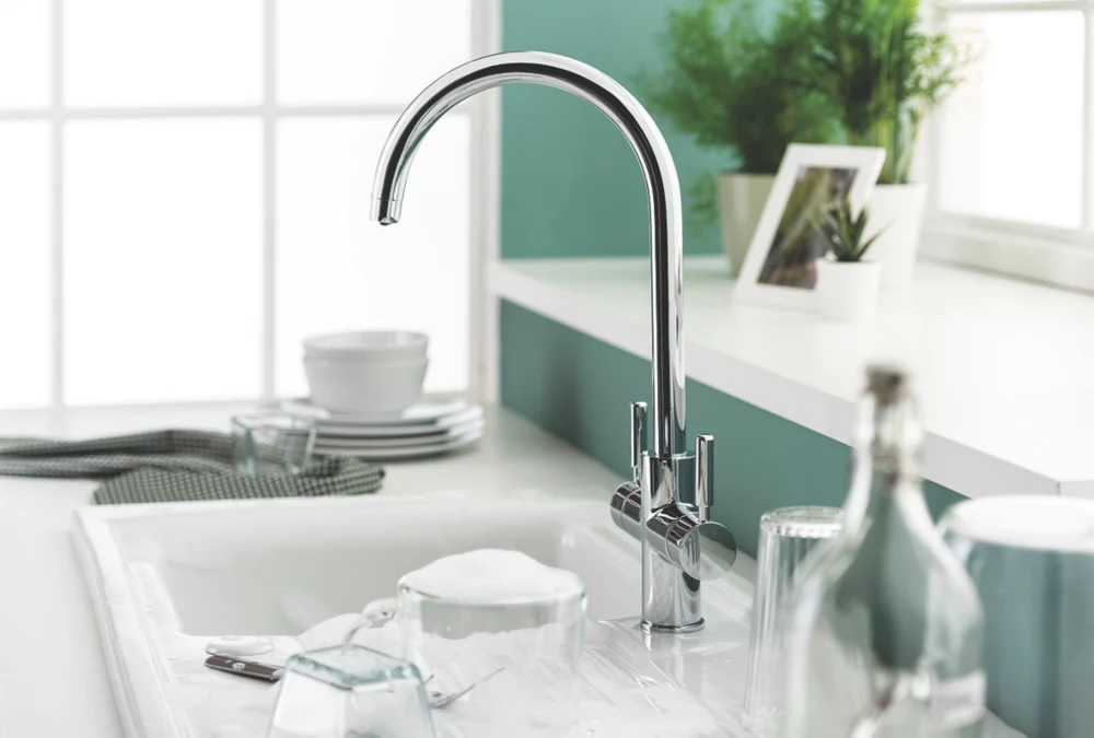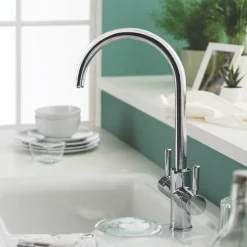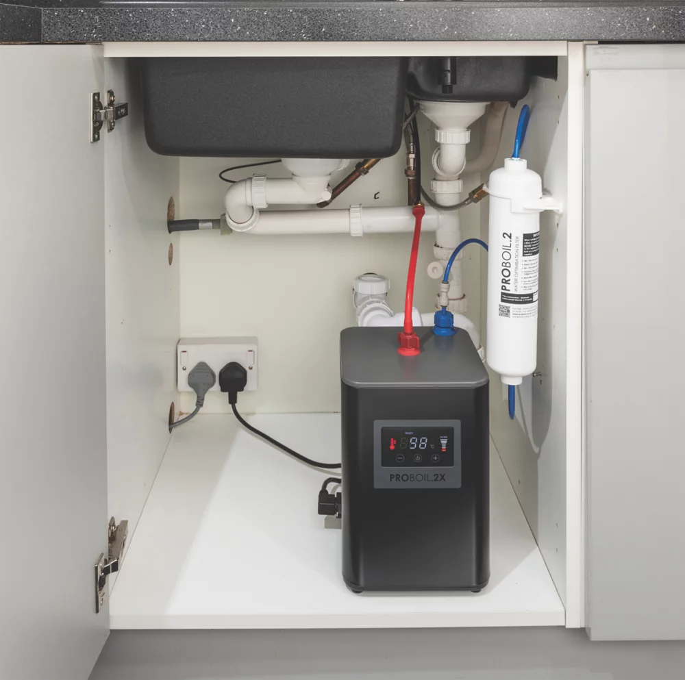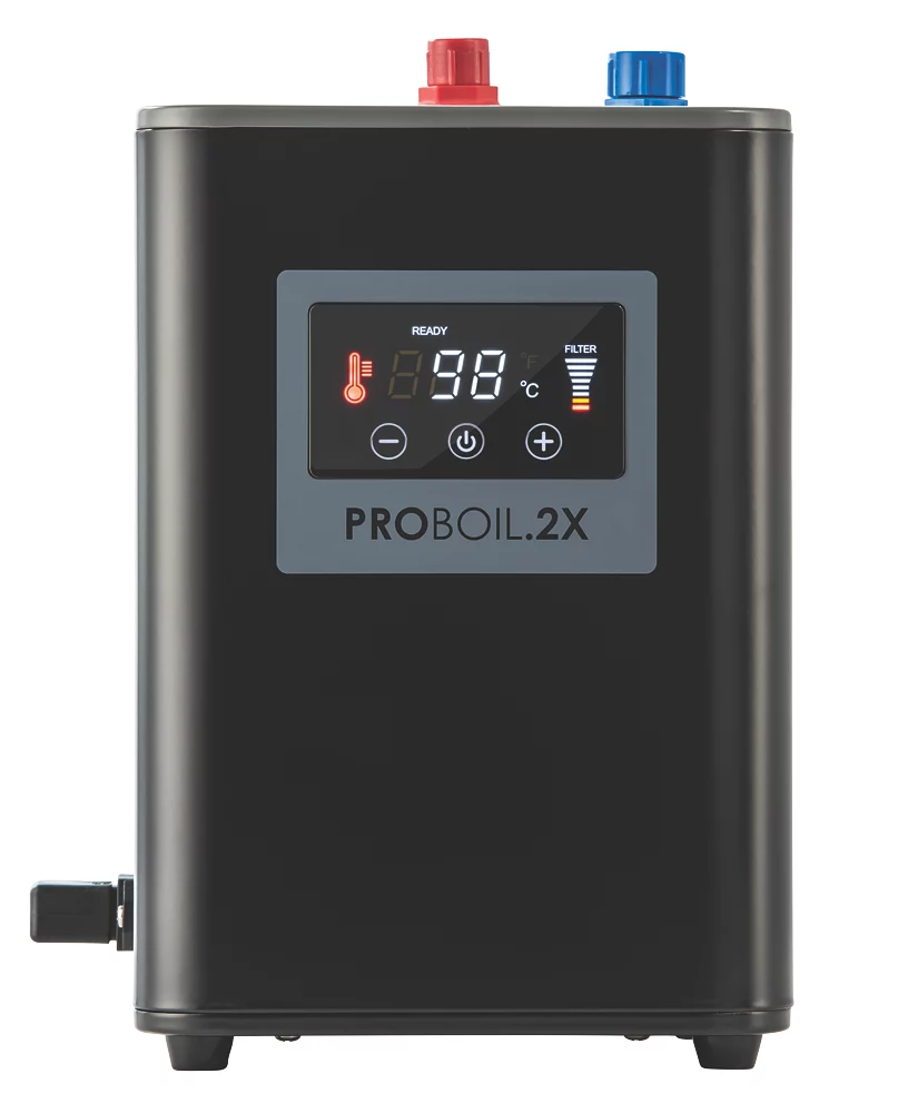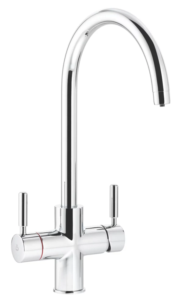 3-in-1 tap delivering steaming hot water up to 98°C. Also provides standard hot and cold water from a mixer.