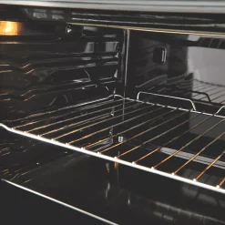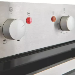 Conventional single electric oven with hard wired cable connection, twin grill and double-glazed door. Designed to protect from overheating. Features 4 functions including grilling and plate warming. Includes baking tray, trivet and shelf. Stainless steel finish.