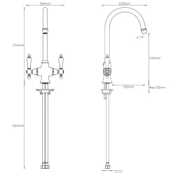 ¼ turn operation with a functional swivel spout. Separate hot and cold water controls. Fitted with a Neoperl water saving aerator that regulates the flow of the tap and helps save water with every use. Features an anti-limescale spout that rubs clean, making everyday cleaning and maintenance easy.