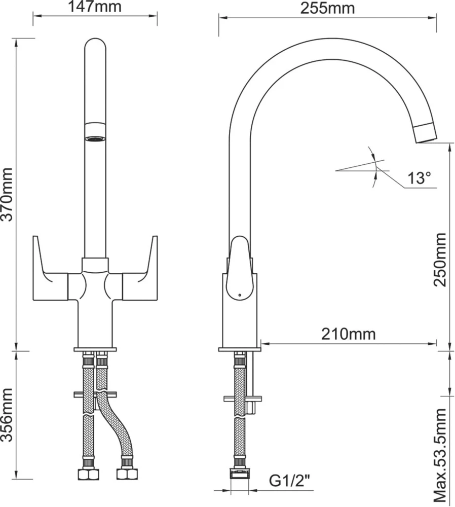 | Hose Supplied | Supplied with Flexible Tap Connector |