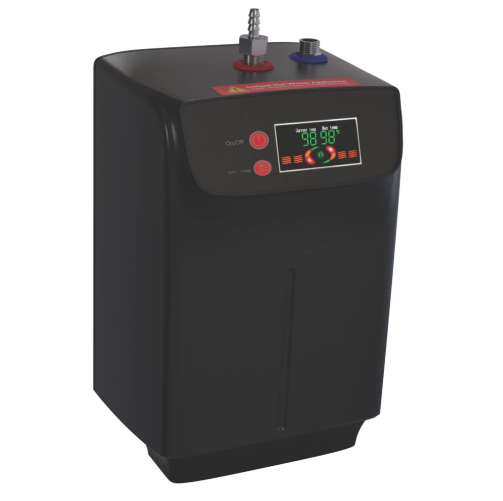 Instant hot water tap with 2.4Ltr, energy-efficient, insulated boiler tank that allows the tank temperature to be maintained. Digital touch control enables quick changes of water temperature from 75 to 98°C. Innovative carbon filter eliminates impurities, improving the water’s flavour and clarity. Features 360° swivel spout for use when filling tall pots. Compact size to fit easily into base units.