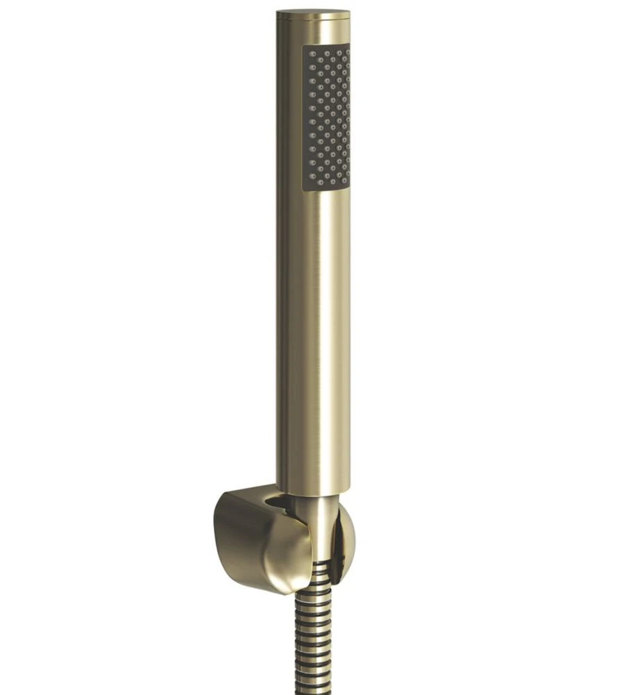 Brass construction with brushed brass finish. Ceramic cartridge. Includes shower kit.