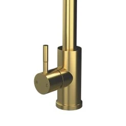 Features cylinder spout and high quality flexible pull-out button rinse spray. Temperature and water pressure are easily controlled using single lever handle positioned on side of the tap.