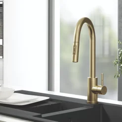 Contemporary dual-function tap featuring 360° swivel spout and convenient pull-out spray head. Switch between normal and shower sprays with the press of a button.