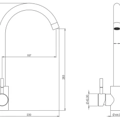 Stainless steel single-lever operated mono mixer with swivel spout. Ideal for double bowl sinks. Modern design with matt black finish. Ceramic disc technology.