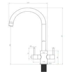 Deck-mounted mixer tap with swivel spout, ideal where there are 1.5 kitchen sinks. Lever design allows for easy adjustment of water flow and temperature. Features PVD finish.