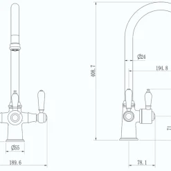 ETAL Traditional Cruciform 3-in-1 Hot Water Kitchen Tap Gold
