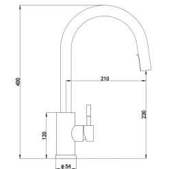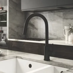 Contemporary dual-function tap. Features button press for switching between normal and shower sprays, all concealed within spout for a clean look.