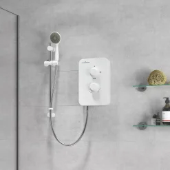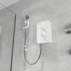 Sleek, space-saving shower with advanced functions and powerful operation offers an affordable solution for any bathroom or ensuite. Features 3 power settings and temperature control, plus 4 multifit installation options for ultimate convenience. Polished stainless steel hose. Delivers an instantly hot and refreshing shower, with no demand on stored water. Easy-to-use controls.