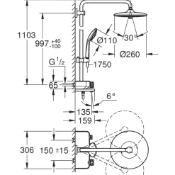 Sophisticated system, complete with head and hand showers and bath filler. SmartControl technology offers option to combine bath inlet, head and hand showers and push-turn water volume control. Features EcoJoy water-saving option when switched from full flow. SafeStop limits water temperature to a maximum of 38˚C up to a maximum of 43˚C (SafeStop Plus) and TurboStat maintains desired temperature, even if supply fluctuates. CoolTouch ensures thermostat surface is never too hot to handle. Head shower features horizontal, 450mm projection arm that swivels through 180º and comes with 3 distinct spray zones for varying powers. DreamSpray ensures even flow of water from every nozzle.