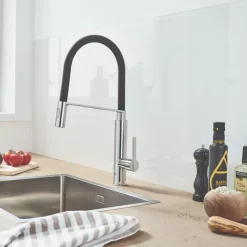 Single lever operation. 35mm ceramic cartridge. Features a high swivel spout and SilkMove technology for the smooth handling of water flow and temperature. Also includes 2 x spray options and the EasyDock M system. Stylish, modern design.