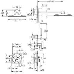 Shower with concealed thermostat features stylish, round rainfall shower head finished in chrome and wall-mounted, allowing pipework to be neatly tucked away in the wall. SmartControl technology offers push-button selection of desired spray pattern and intensity, from super soft mist to stimulating power shower. Thermostatic system features TurboStat and Safestop (Plus), keeping water temperature consistent, preventing unpleasant fluctuations and offering scalding protection at 38˚C or an optional 43˚C.