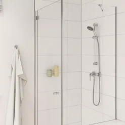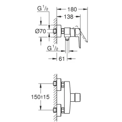 Exposed mixer valve with brass construction. Slim, contemporary design. SilkMove ceramic cartridge delivers precise volume and temperature control. An adjustable flow rate limiter reduces water consumption, while a temperature limiter saves energy. Also prevents backflow of waste water into the water supply.