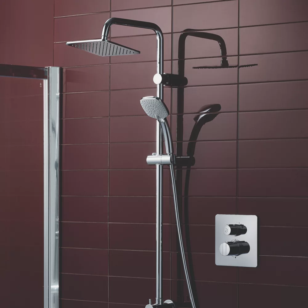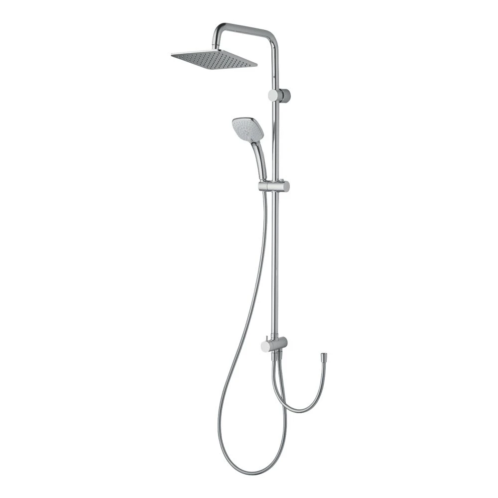 Chromed brass construction. Features push button handspray height adjustment and limescale resistant rub clean nozzles.