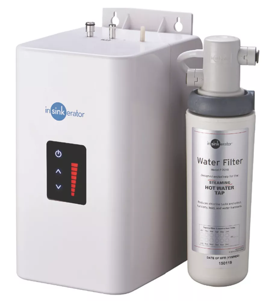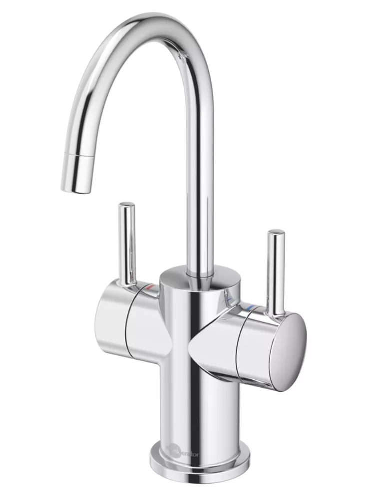 Designed for use alongside existing main tap. Dispenses near-boiling water and cold drinking water. Features corrosion-resistant ceramic disc valve, self-closing hot valve for automatic shut-off, moveable handle to avoid hitting splashback and 360° swivel spout.
