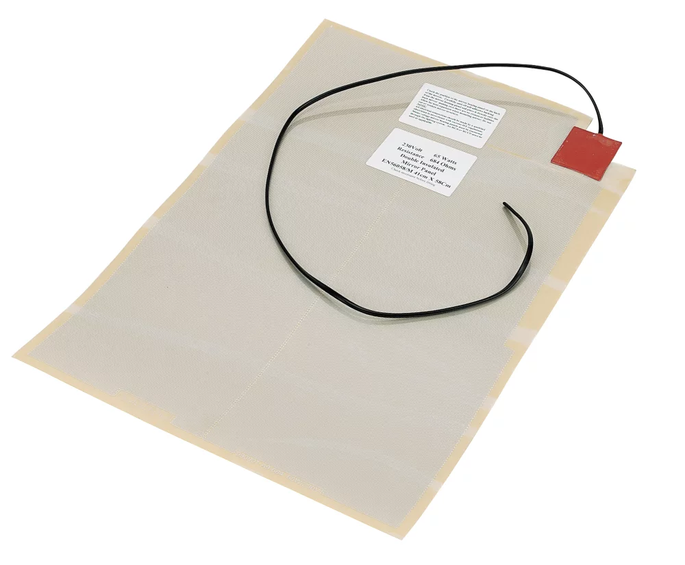 Self-adhesive backing for easy installation to back of mirror. Demists mirror in minutes. Wires can be connected to light switch to save energy.