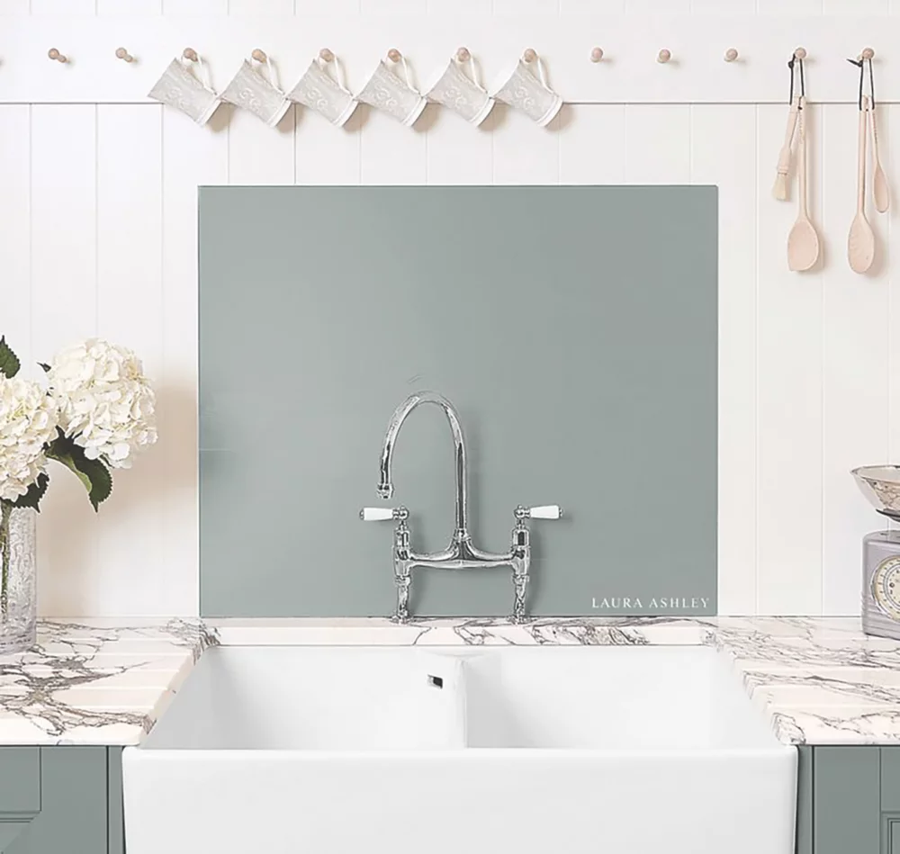 Gloss finish. Easy to install with self-adhesive backing. Ideal for installation behind behind larger hobs and range cookers. Clean with warm, soapy water only.