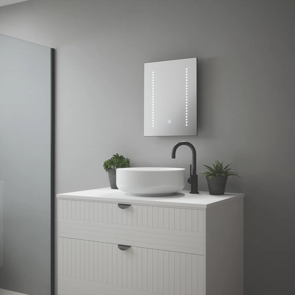 Dimmable LED mirror with shaver socket. Tunable function with 3 colour temperature options. Built-in demister pad with automatic shut-off after 30 minutes.