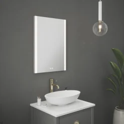 Diffused illuminated border provides a dimmable, uniform light output with no dark spots. Tunable function with 3 colour temperature options. Features built-in dual channel Bluetooth Speakers which enable streaming from connected devices, such as smartphones or tablets. Demister pad for a fog-free mirror.