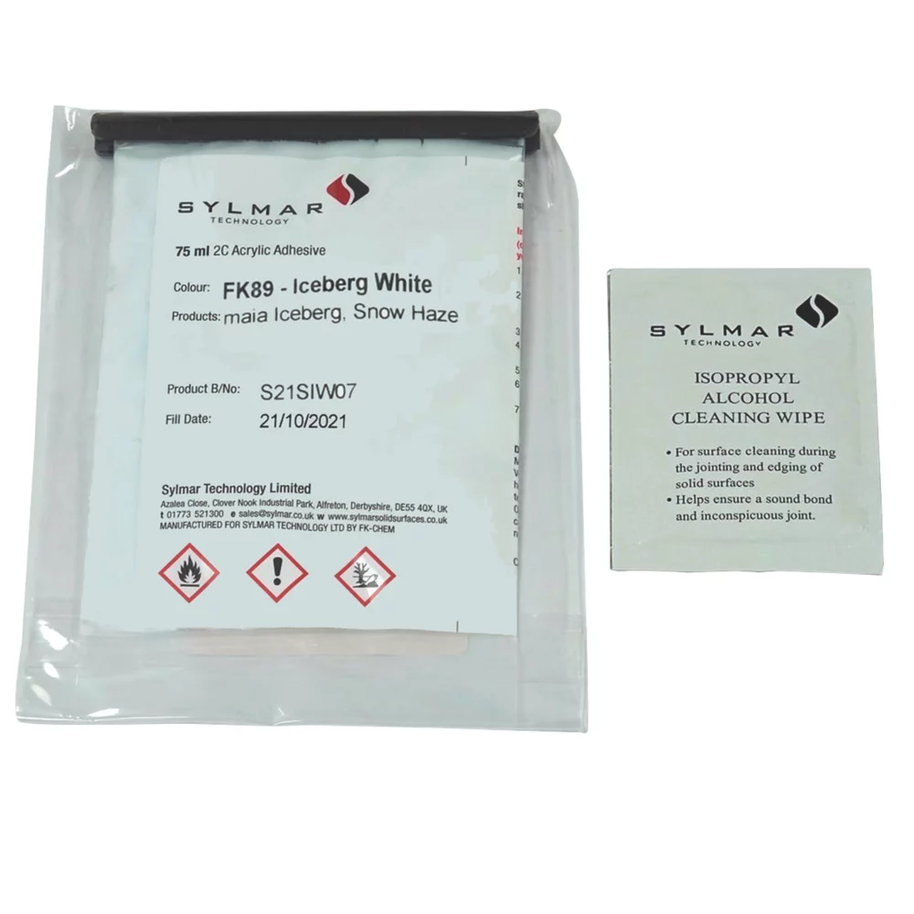 Colour-matched adhesive sachet with isopropyl alcohol wipe.