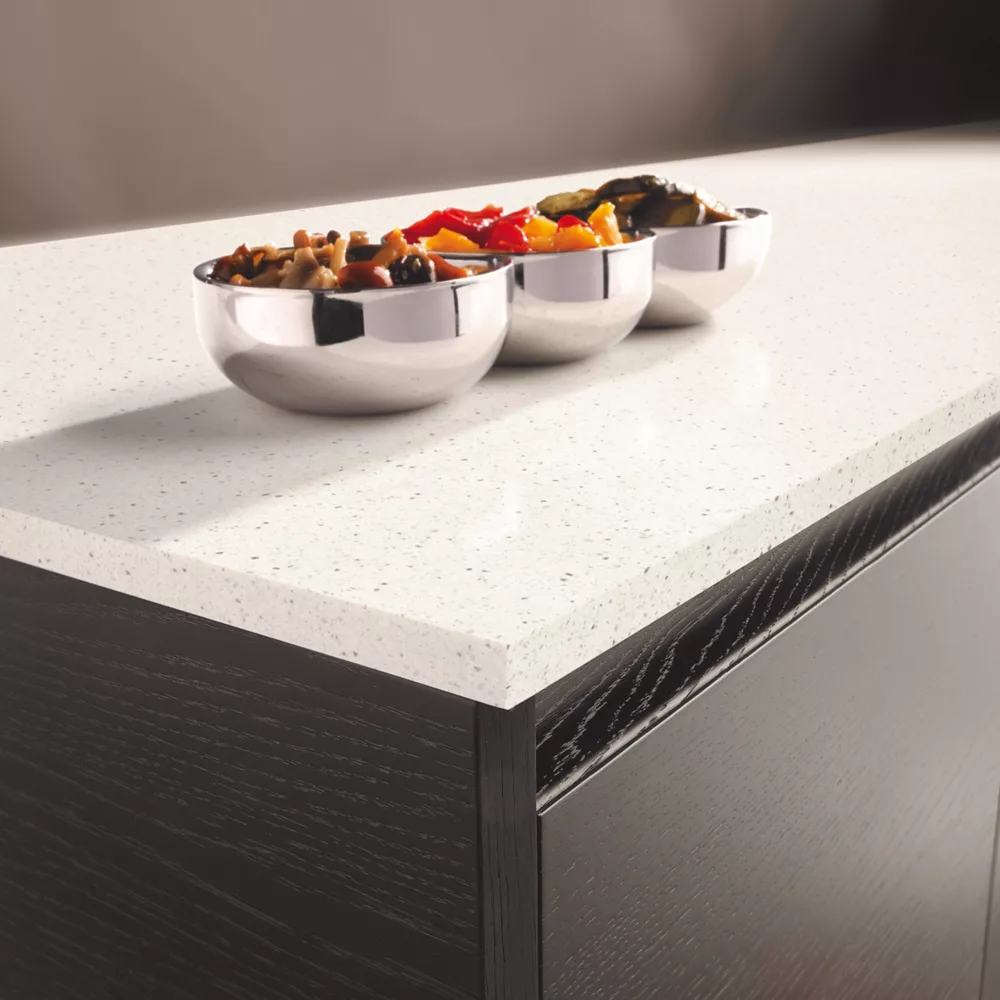 15mm slimline solid surfaces that are designed perfectly to offer style and efficiency in the kitchen due to their slender build and shape. Ultra-thin with seamless joints for a continuous finish. Supplied with smooth factory-machined face and edges, all finished by hand.