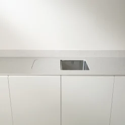 Slimline 15mm solid surfaces designed to offer style and efficiency in the kitchen due to their slender build and shape. Ultra-thin with seamless joints for a continuous finish. Pre-fabricated sink recess and drainer grooves for less work on site.