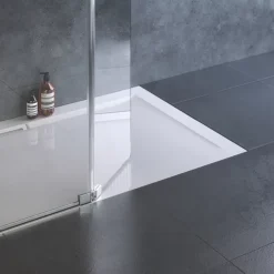 Lightweight and strong shower tray. Can be installed flush to the floor, surface-mounted or on riser legs. Waste has been designed to fit easily between floor joists. Featuring BioCote technogy to help reduce mould and bacteria growth. Waste can be rotated 180° to connect with the waste pipe dependent on installation need. Easy cleaning with the removeable waste trap.