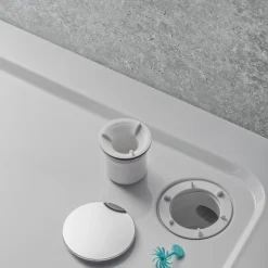 Made from durable acrylic-capped resin stone for strength and rigidity. Tough and light, with a low profile of 40mm. Scratch, chip and discolouration-resistant. Great for creating low-level access within the shower area. Corner waste position provides flexibility for joist configurations. BioCote technology fights mould and bacteria, reducing it by up to 99.9%. Rapi-Flo waste has been specifically designed to provide a high flow rate and incorporates enhanced features such as top access, removable funnel and a hair catcher to ensure rapid drainage from the tray and easy maintenance. 360° waste rotation to suit pipework placement. Features 4 tiling upstands, 22mm vertical extensions that enable a watertight finish between the tray and the wall surface, and allow a framed door to sit within the top of the tray to prevent leaks during use.